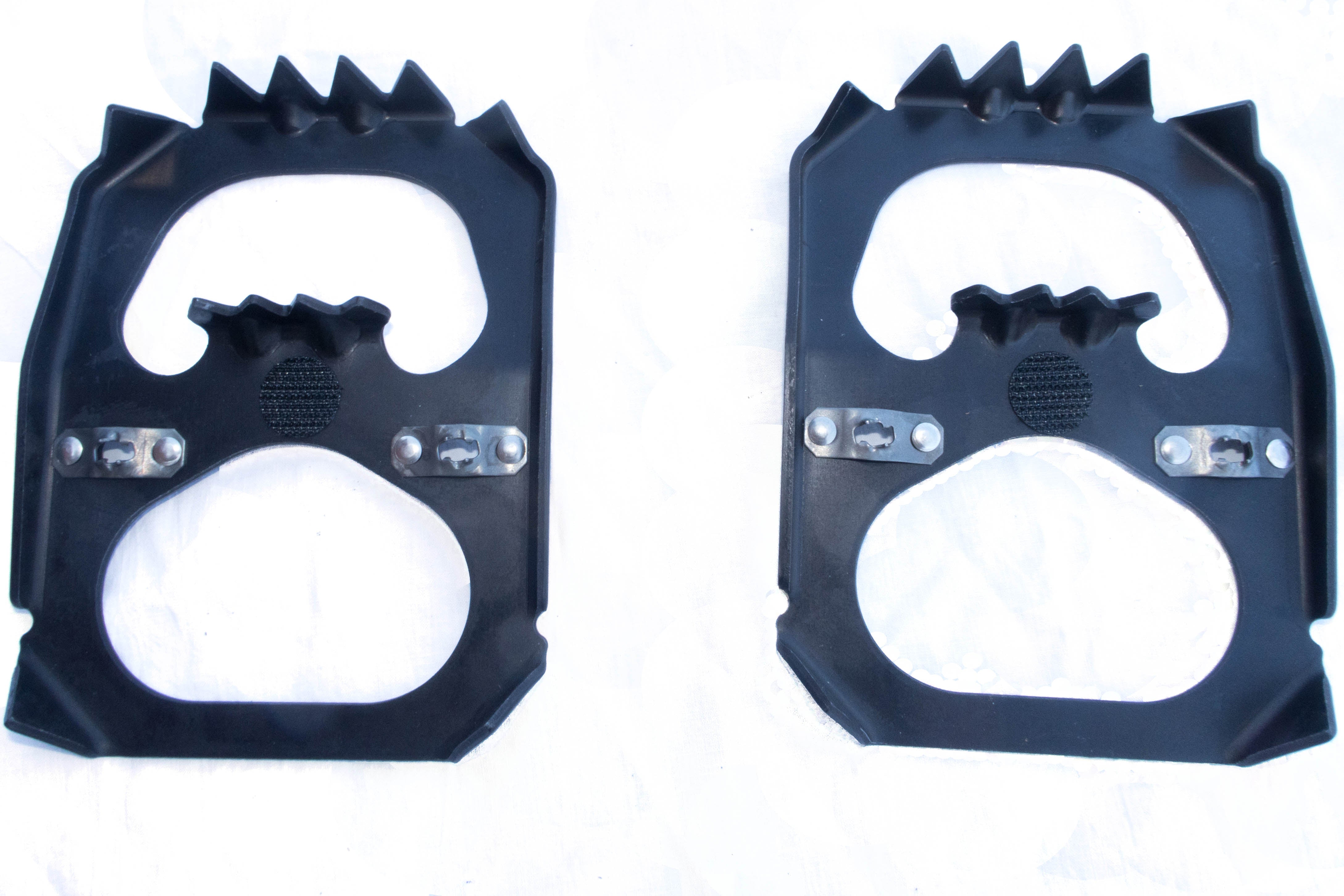 These cleats are made of aluminum and include a teflon coating to help prevent ice and snow from sticking. Great for heavier persons on groomed trails and packed snow.